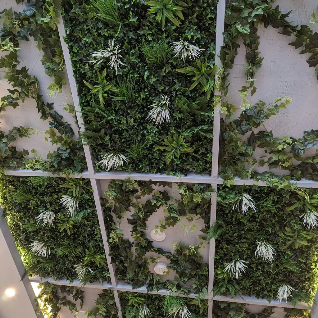 Bring a fresh, contemporary tropical vibe into your space with the White Grassy Tropics Vertical Garden Panel. Unlike flat hedge panels, this design bursts with layers of lifelike foliage including deep emerald leaves, glossy tropical plants, and striking tufts of white-tipped grasses that pop against the darker greenery. The result is a lush, high-contrast wall that feels alive with texture and depth.