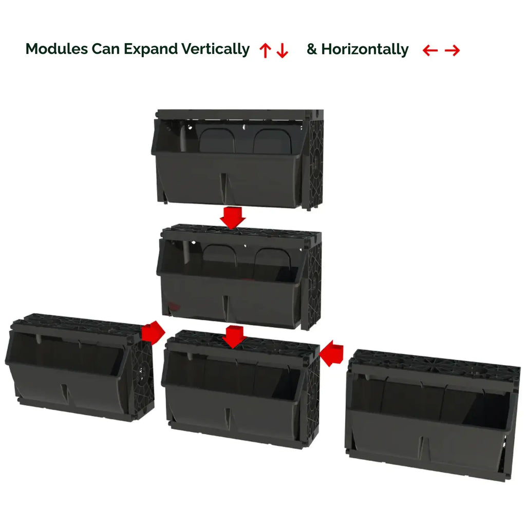 Unlike pocket-style slim profile green walls, the Gro-Wall Slim Pro uses low profile planter trays that hold 6 litres of growing media per plant. This supports stronger root development, more stable moisture levels, and healthier long-term growth, especially in exposed outdoor locations.